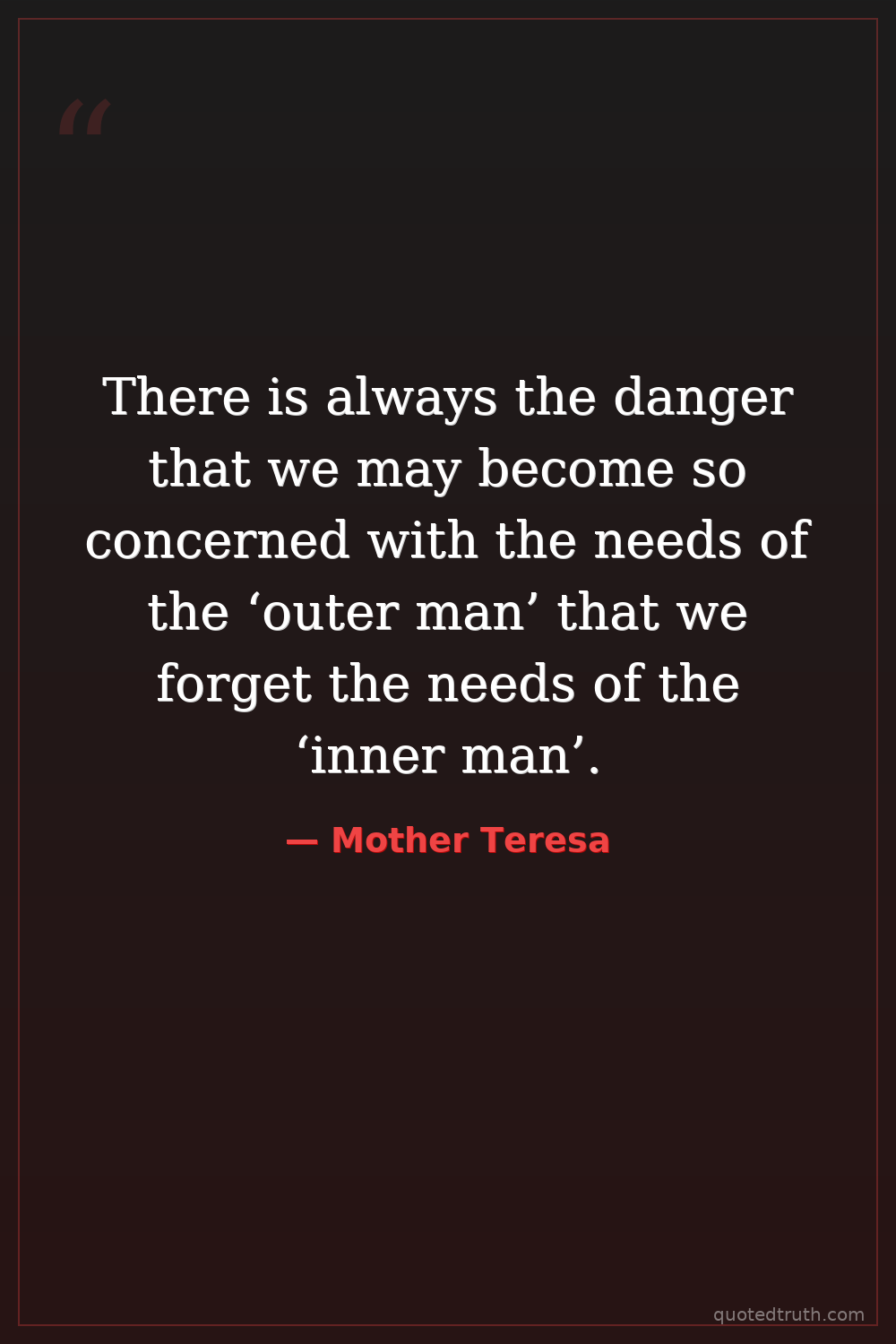 There is always the danger that we may become so concerned with the needs of the ‘outer man’ that we forget the needs of the ‘inner man’.