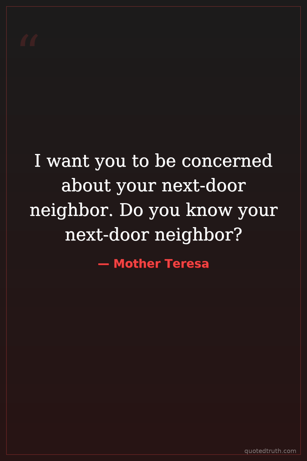 I want you to be concerned about your next-door neighbor. Do you know your next-door neighbor?