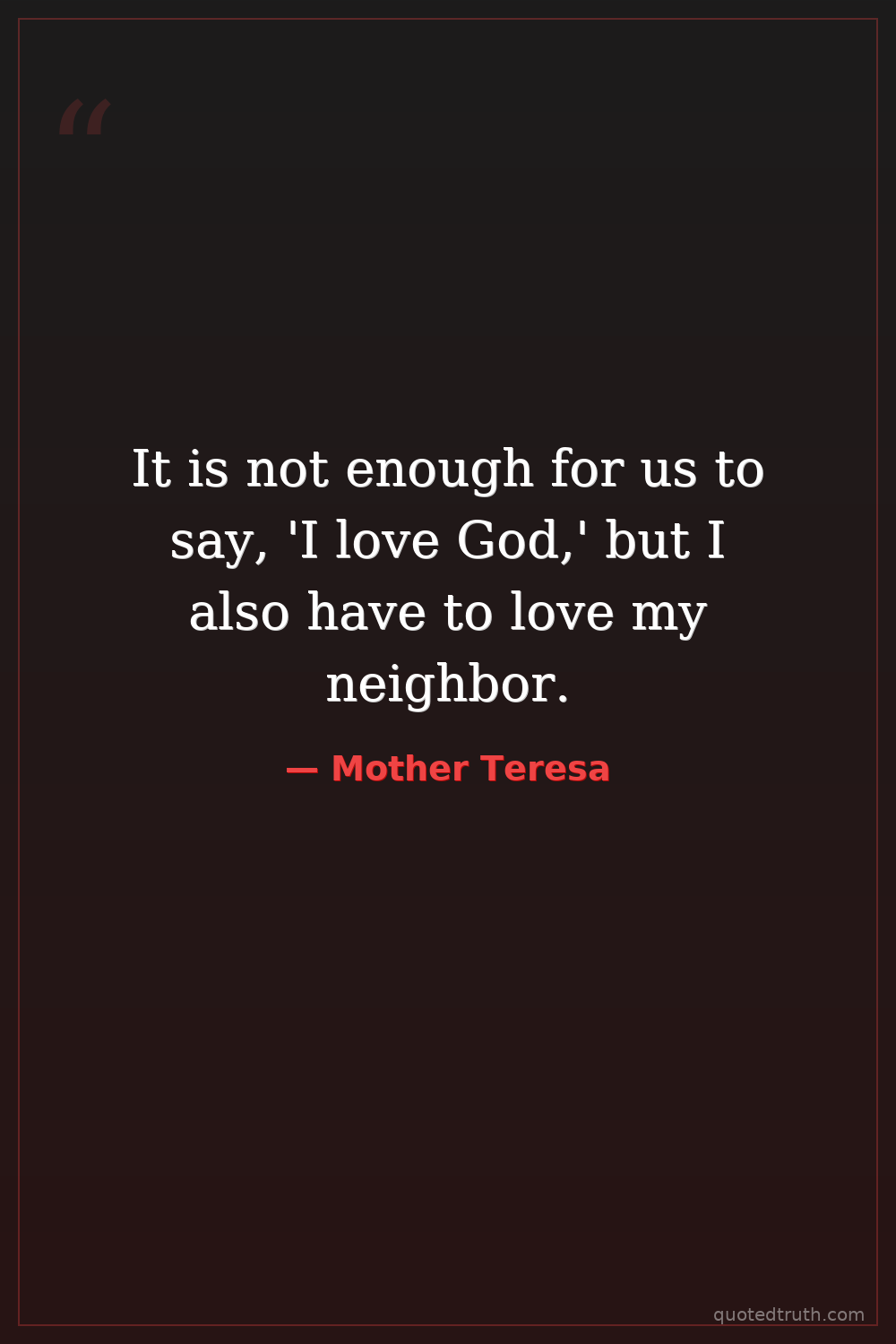 It is not enough for us to say, 'I love God,' but I also have to love my neighbor.