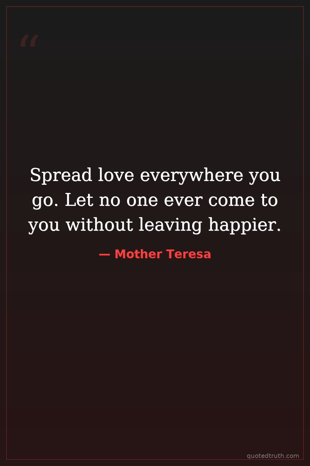Spread love everywhere you go. Let no one ever come to you without leaving happier.