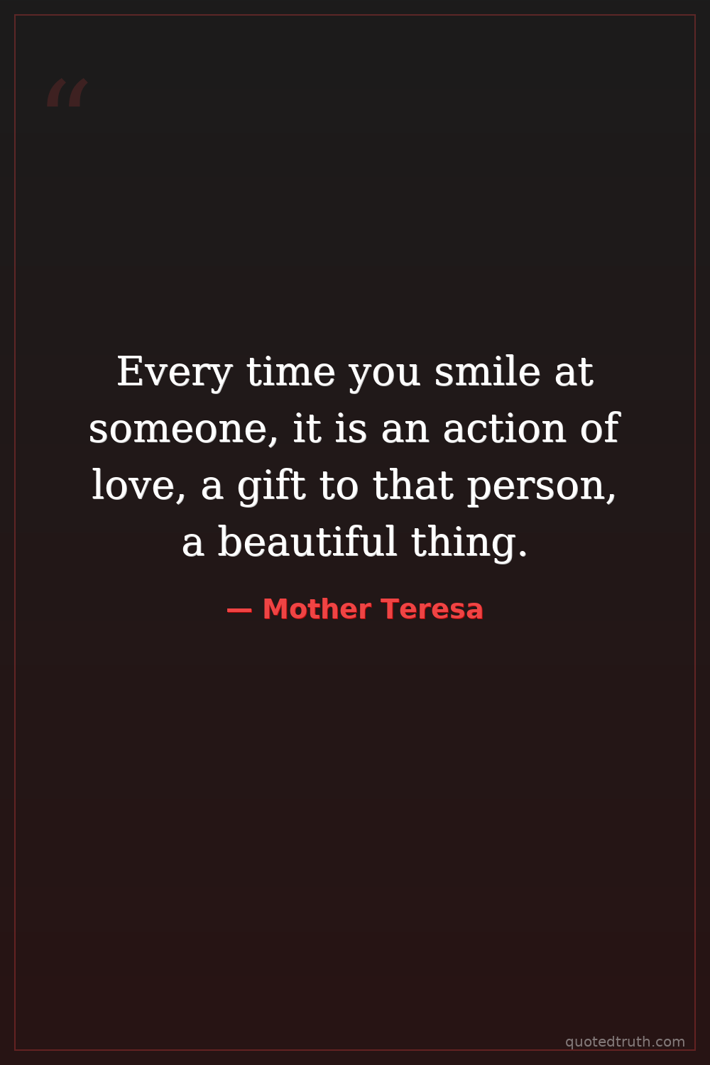 Every time you smile at someone, it is an action of love, a gift to that person, a beautiful thing.