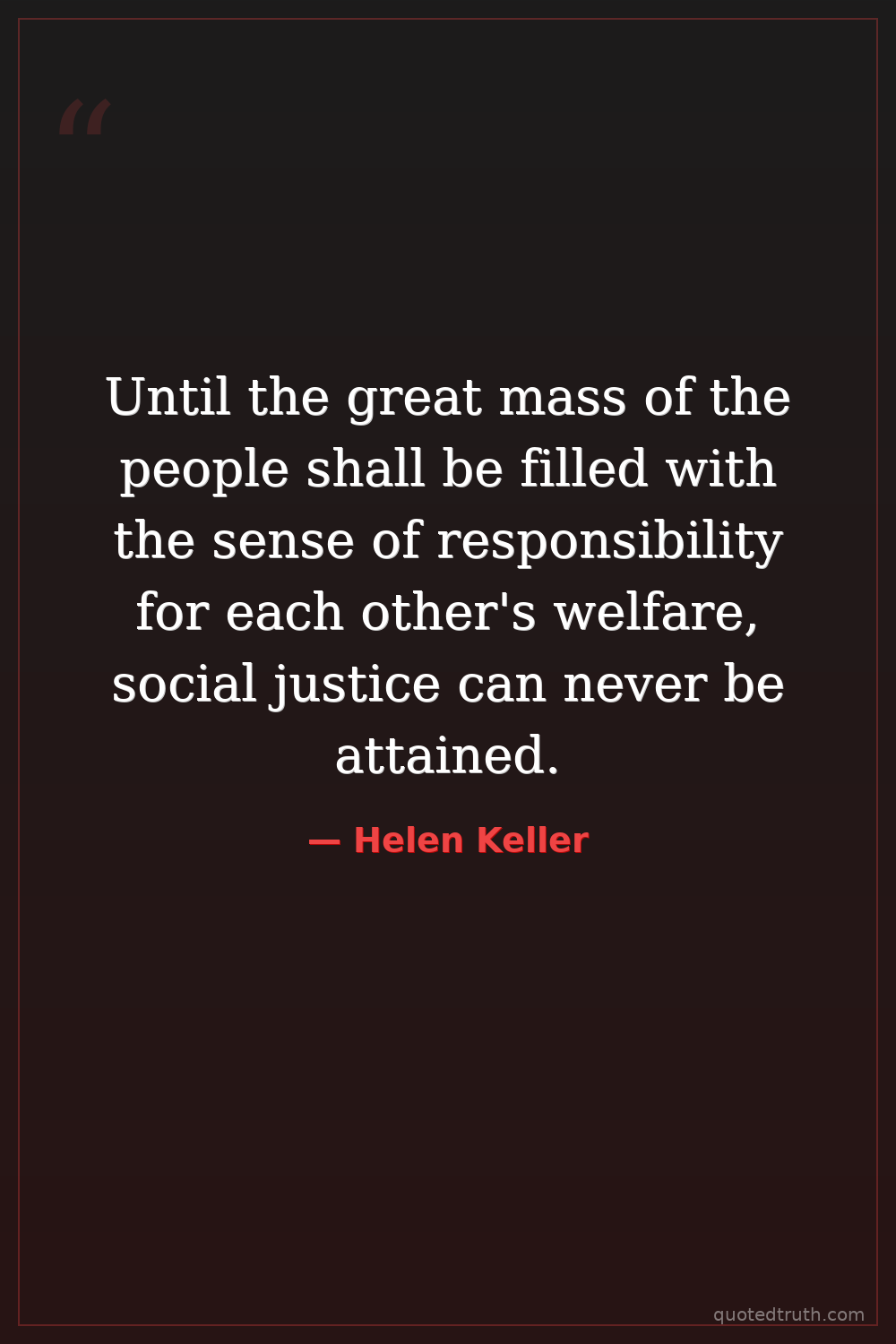 Until the great mass of the people shall be filled with the sense of responsibility for each other's welfare, social justice can never be attained.