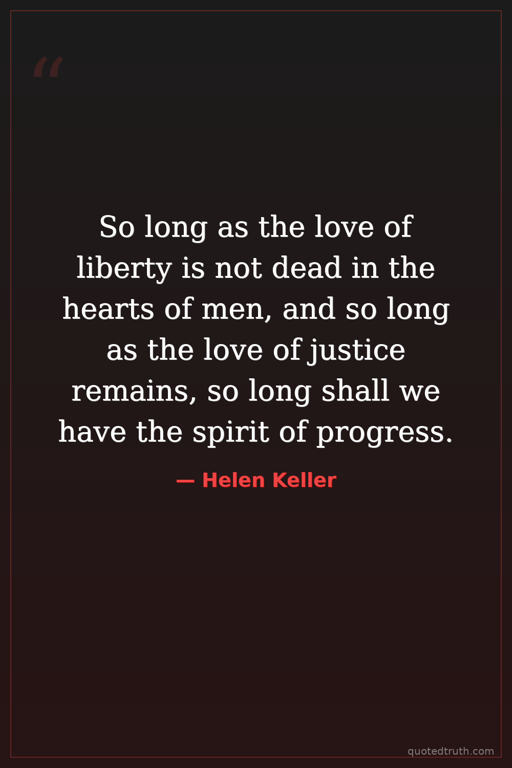 So long as the love of liberty is not dead in the hearts of men, and so long as the love of justice remains, so long shall we have the spirit of progress.