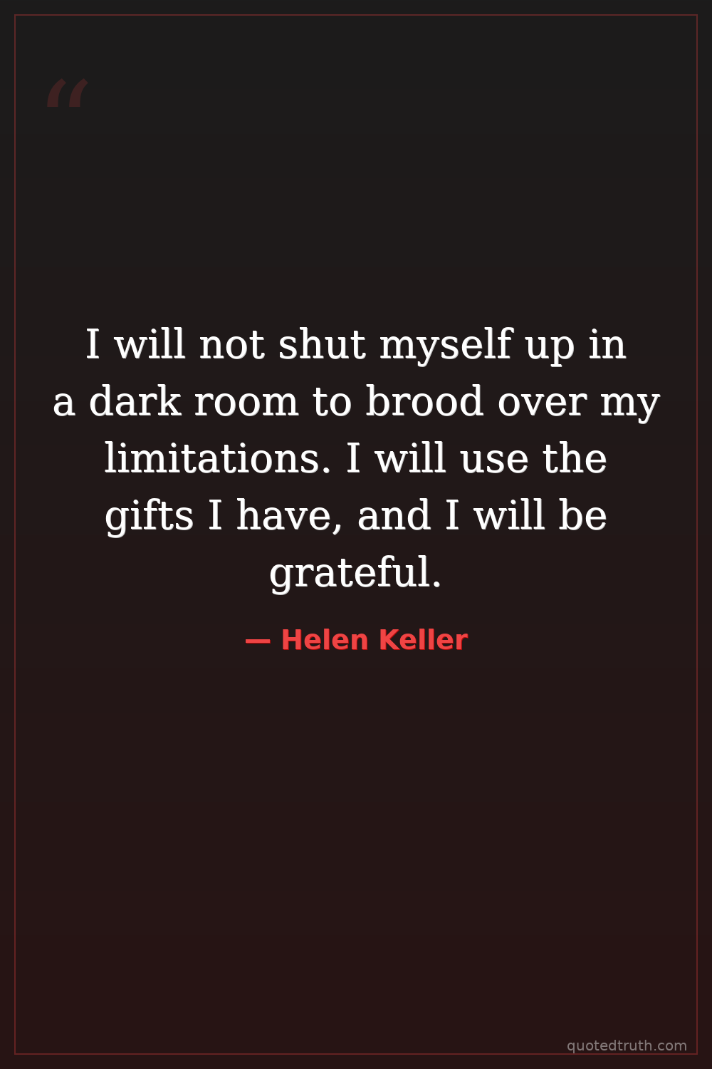 I will not shut myself up in a dark room to brood over my limitations. I will use the gifts I have, and I will be grateful.