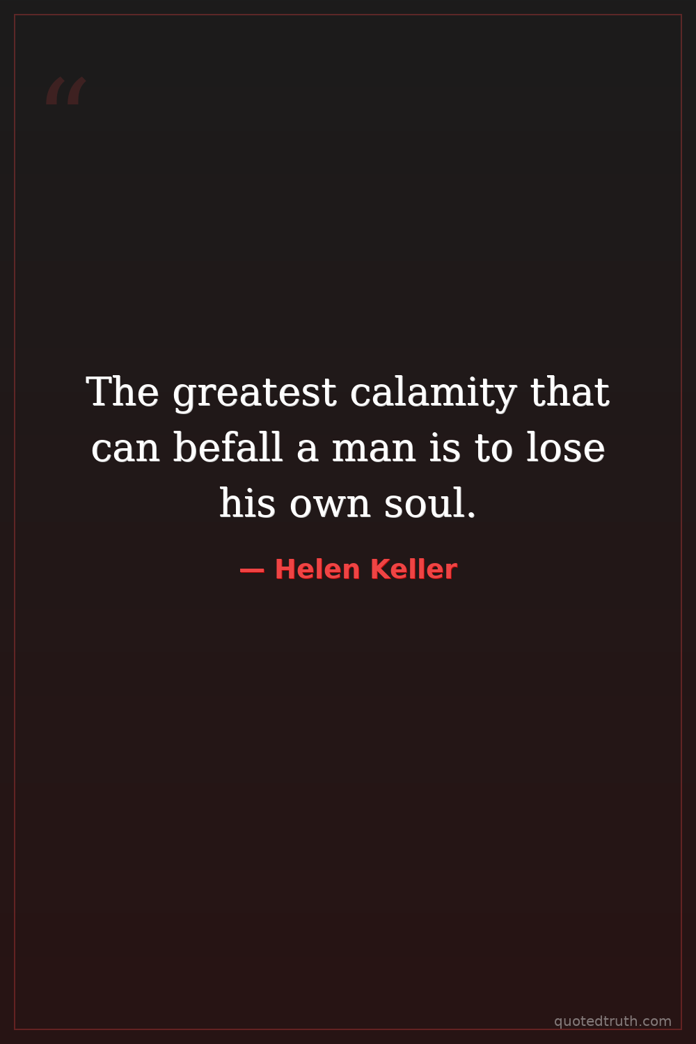 The greatest calamity that can befall a man is to lose his own soul.