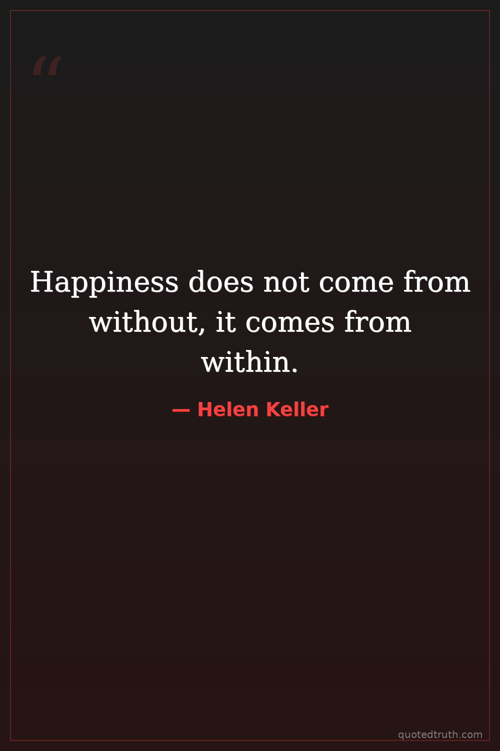 Happiness does not come from without, it comes from within.