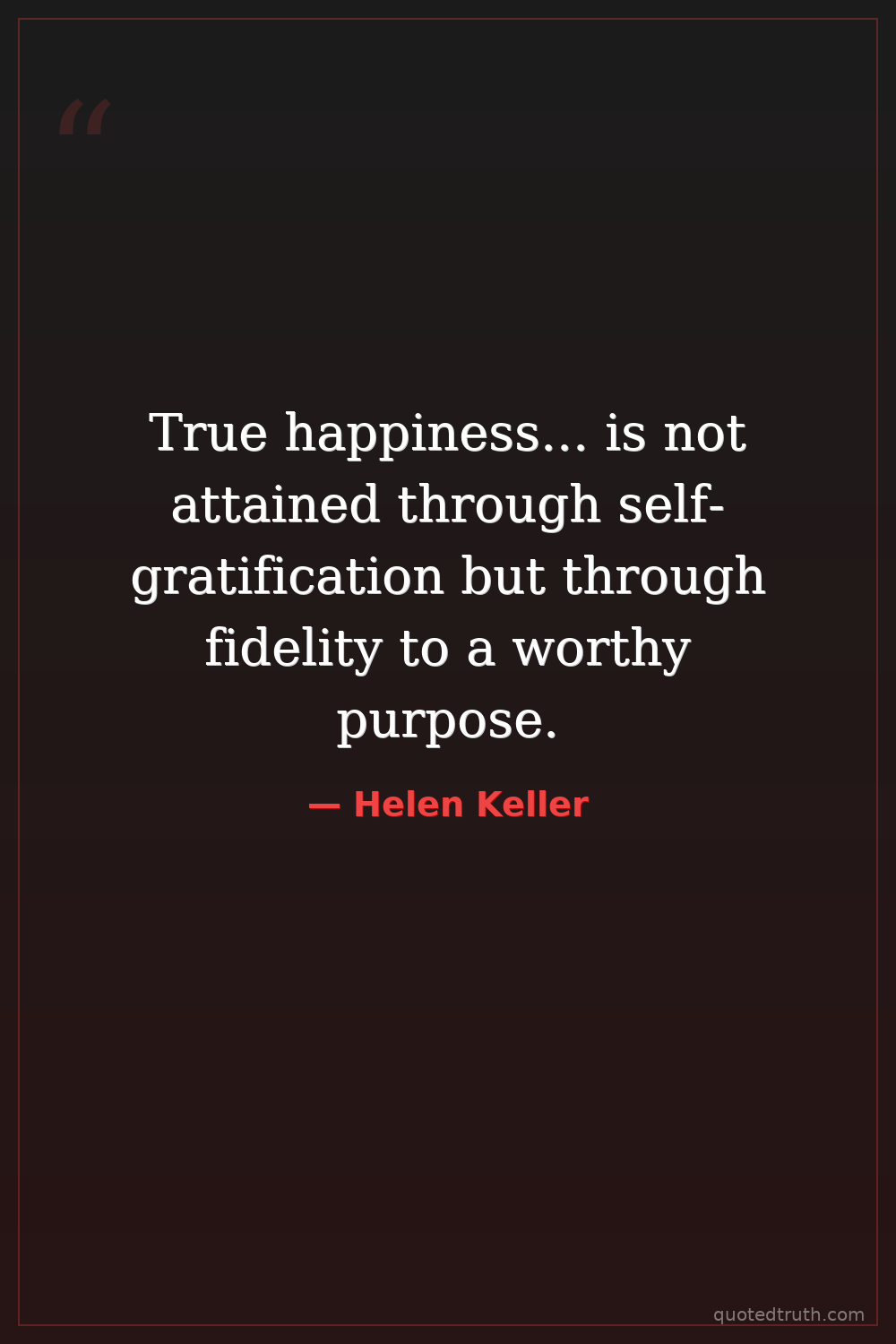 True happiness... is not attained through self-gratification but through fidelity to a worthy purpose.