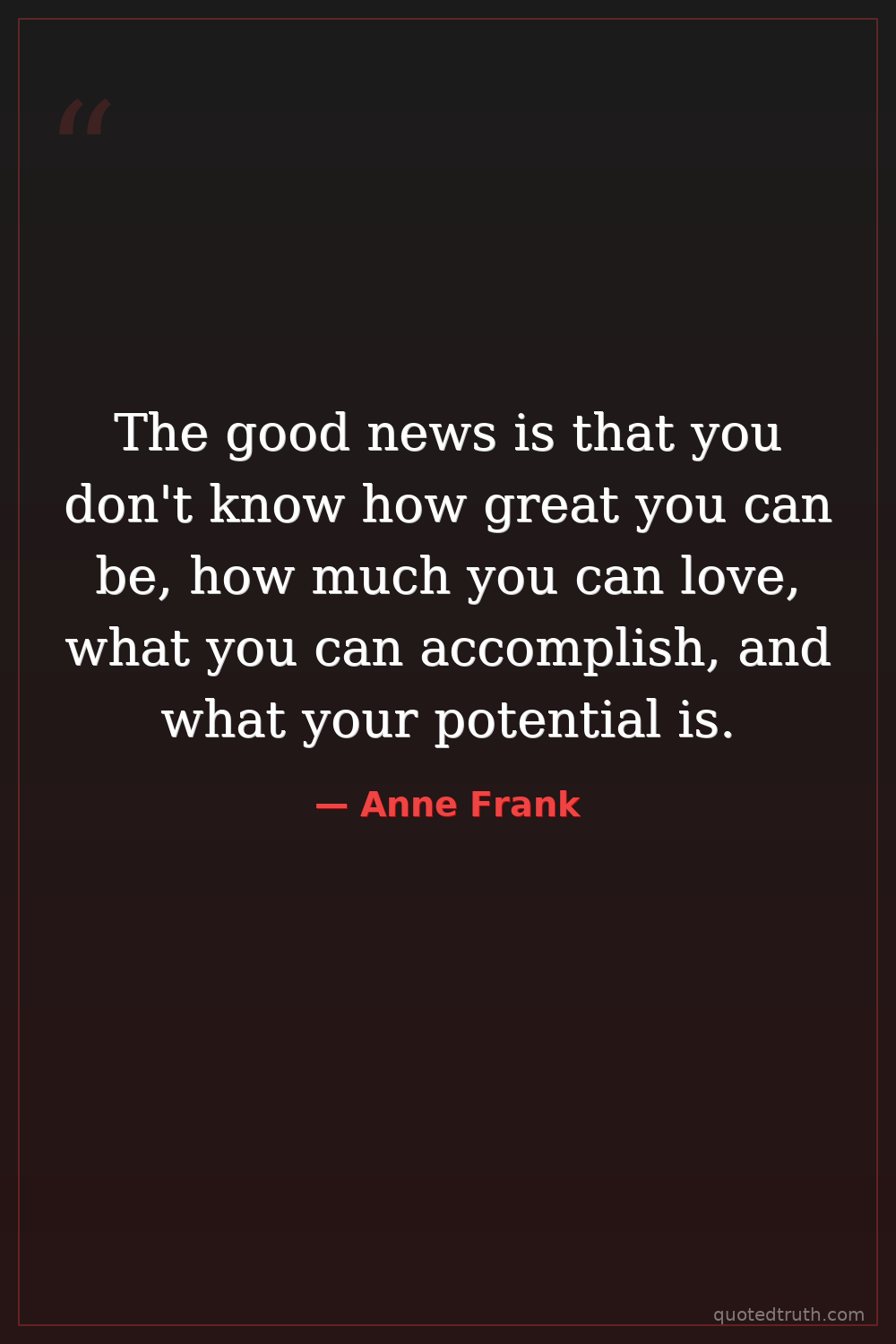The good news is that you don't know how great you can be, how much you can love, what you can accomplish, and what your potential is.