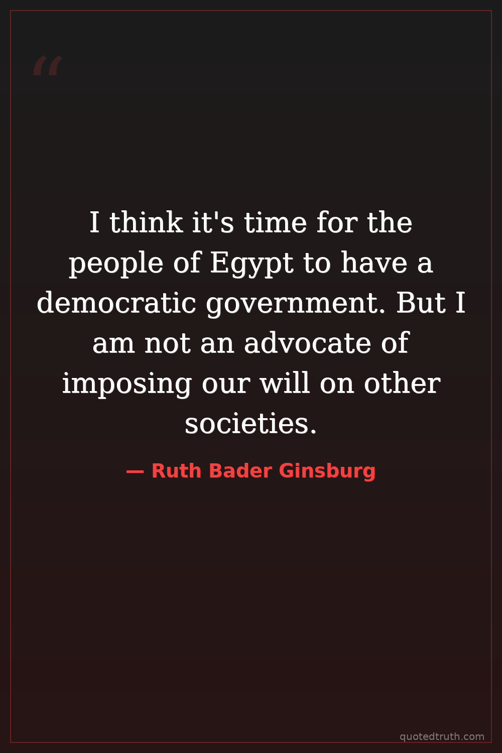 I think it's time for the people of Egypt to have a democratic government. But I am not an advocate of imposing our will on other societies.
