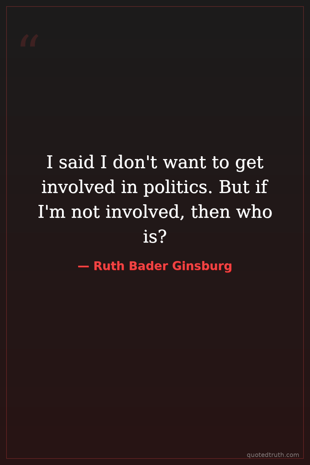 I said I don't want to get involved in politics. But if I'm not involved, then who is?