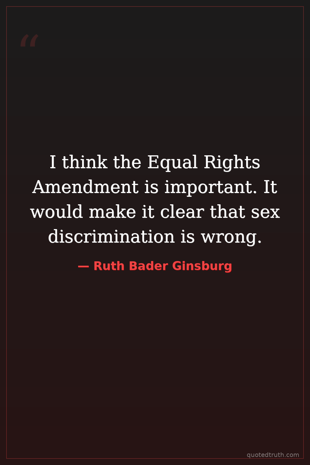 I think the Equal Rights Amendment is important. It would make it clear that sex discrimination is wrong.