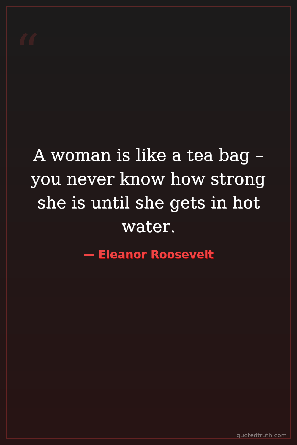 A woman is like a tea bag – you never know how strong she is until she gets in hot water.
