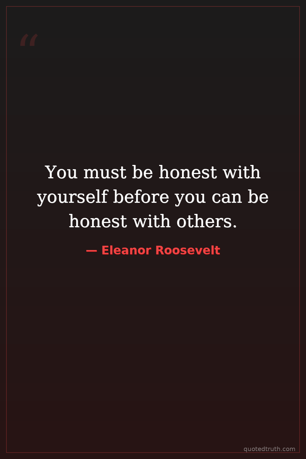 You must be honest with yourself before you can be honest with others.