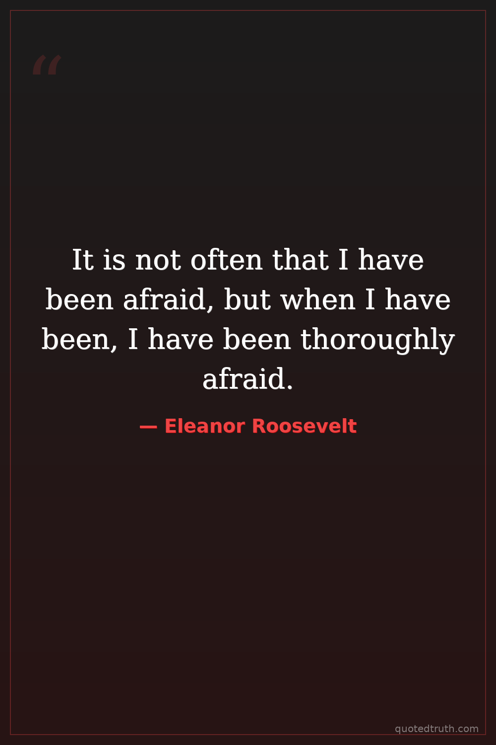 It is not often that I have been afraid, but when I have been, I have been thoroughly afraid.