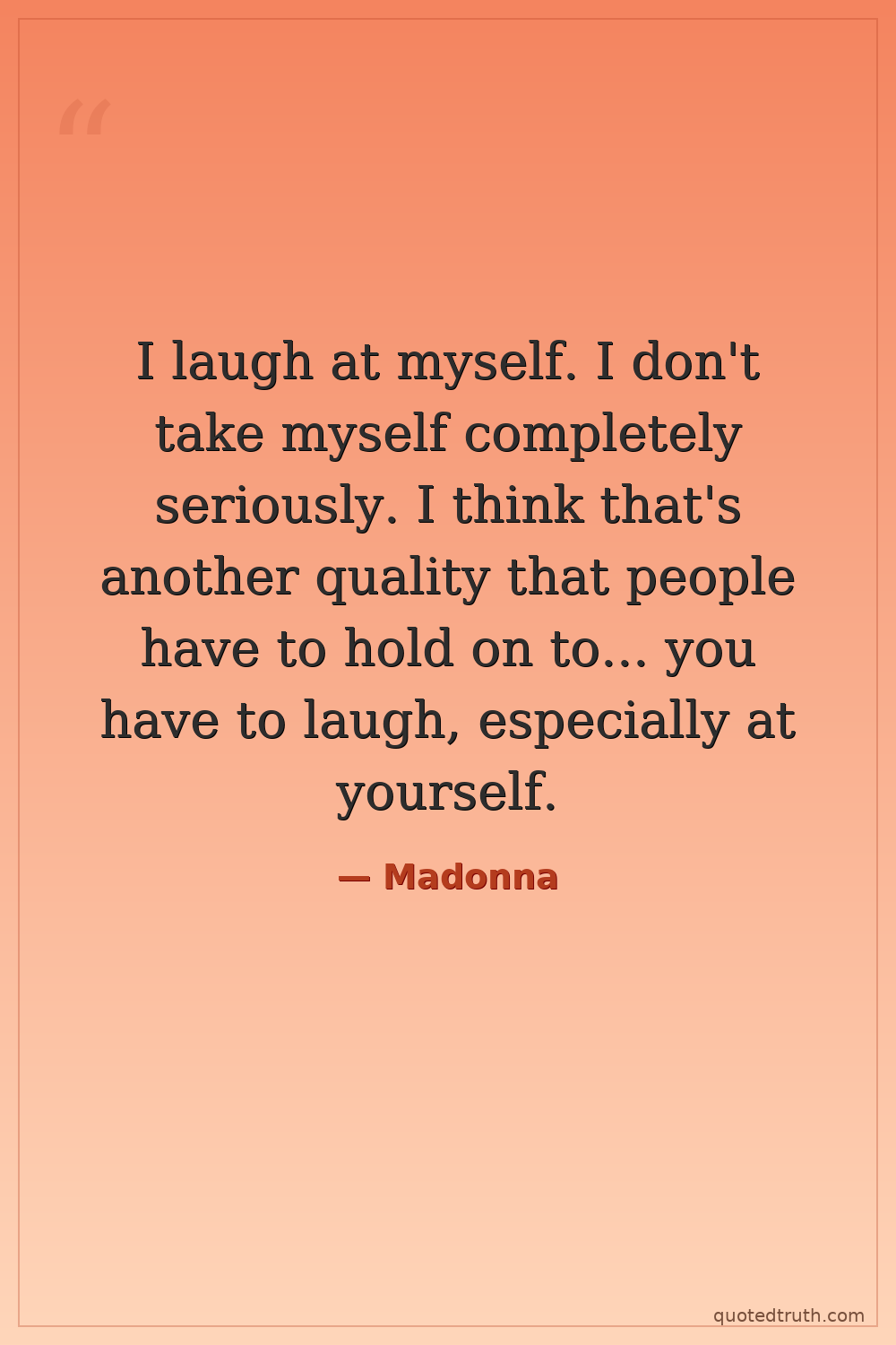 I laugh at myself. I don't take myself completely seriously. I think that's another quality that people have to hold on to... you have to laugh, especially at yourself.