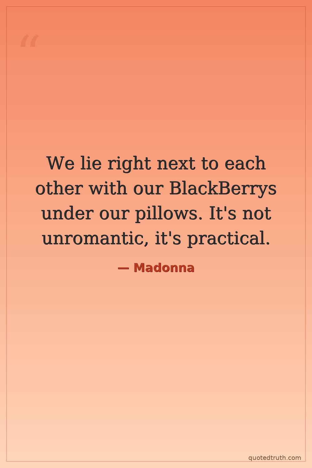 We lie right next to each other with our BlackBerrys under our pillows. It's not unromantic, it's practical.