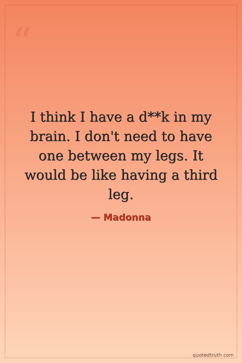 I think I have a d**k in my brain. I don't need to have one between my legs. It would be like having a third leg.
