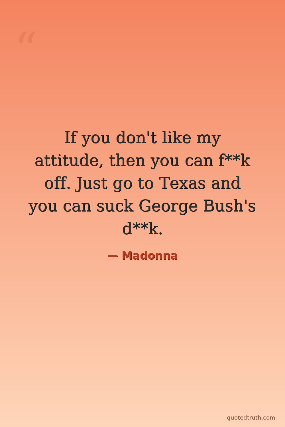 If you don't like my attitude, then you can f**k off. Just go to Texas and you can suck George Bush's d**k.