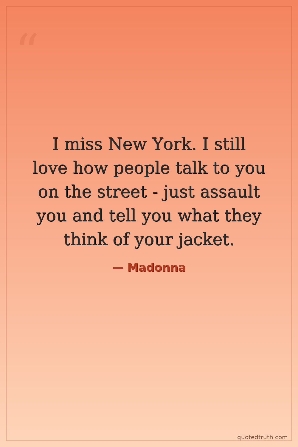 I miss New York. I still love how people talk to you on the street - just assault you and tell you what they think of your jacket.
