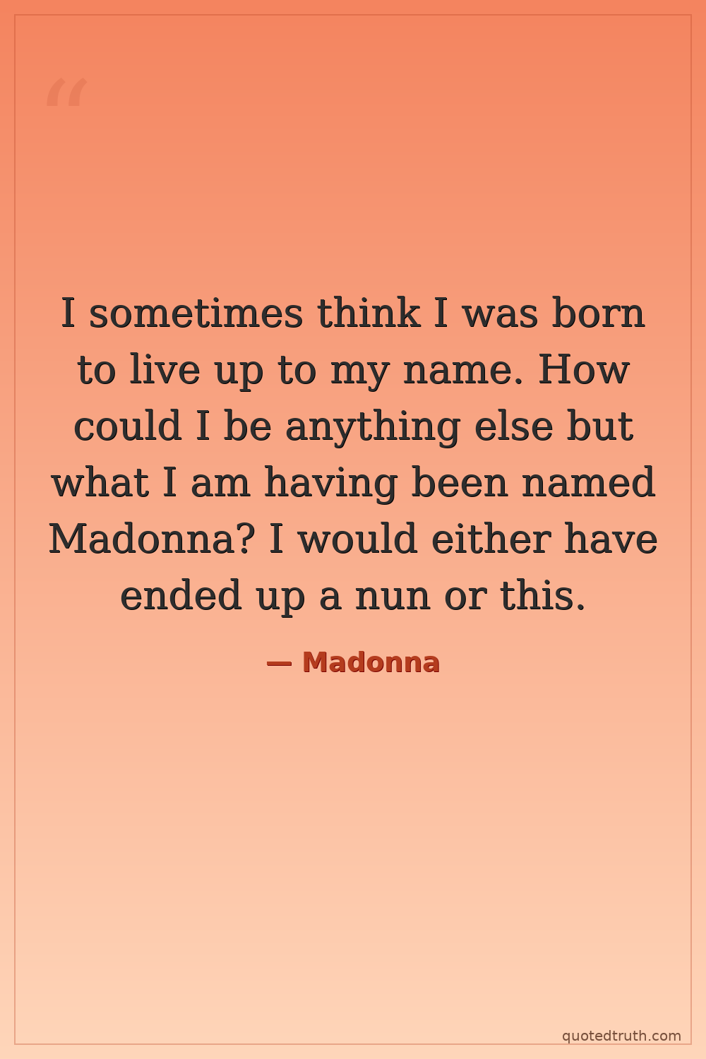 I sometimes think I was born to live up to my name. How could I be anything else but what I am having been named Madonna? I would either have ended up a nun or this.