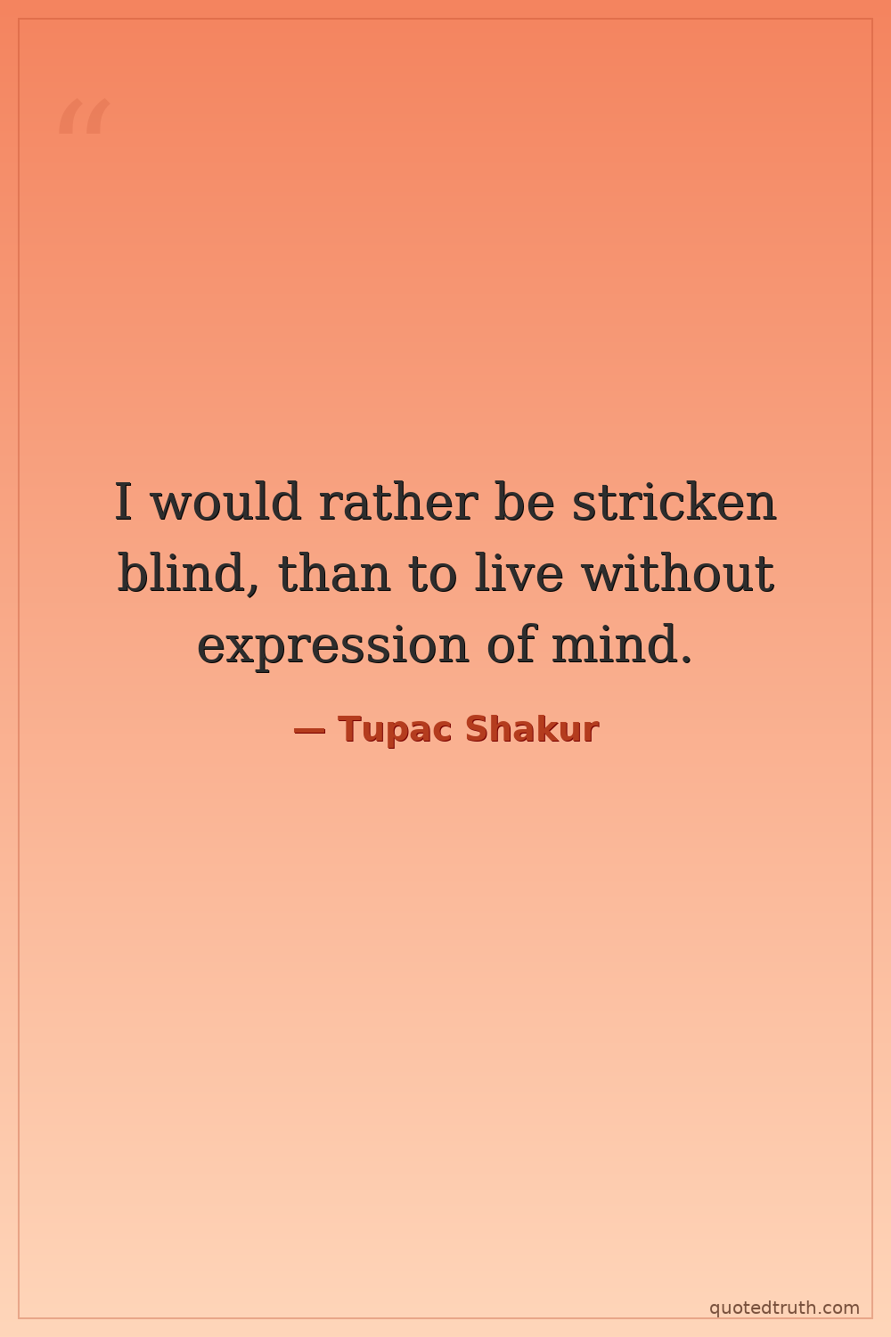 I would rather be stricken blind, than to live without expression of mind.