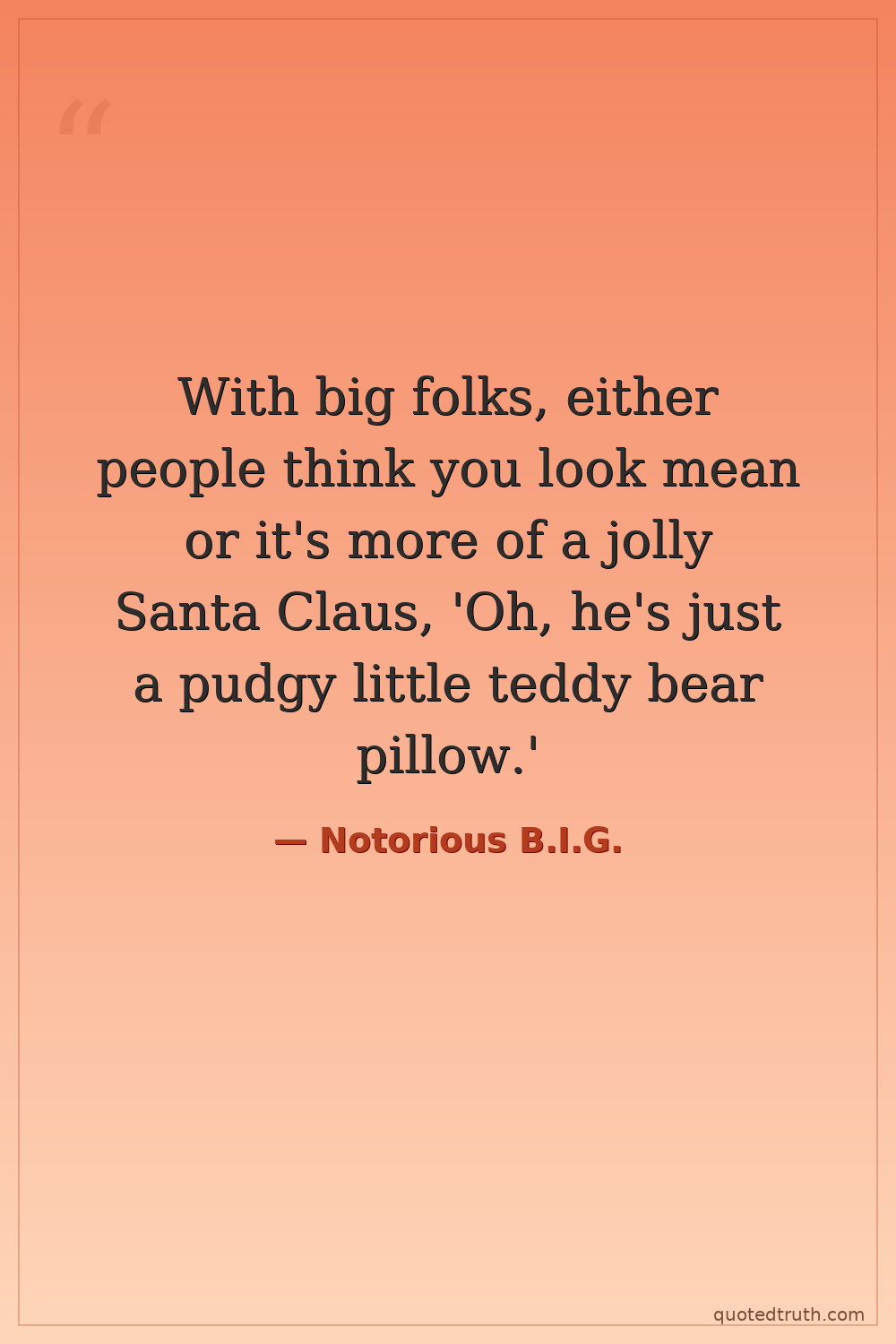With big folks, either people think you look mean or it's more of a jolly Santa Claus, 'Oh, he's just a pudgy little teddy bear pillow.'