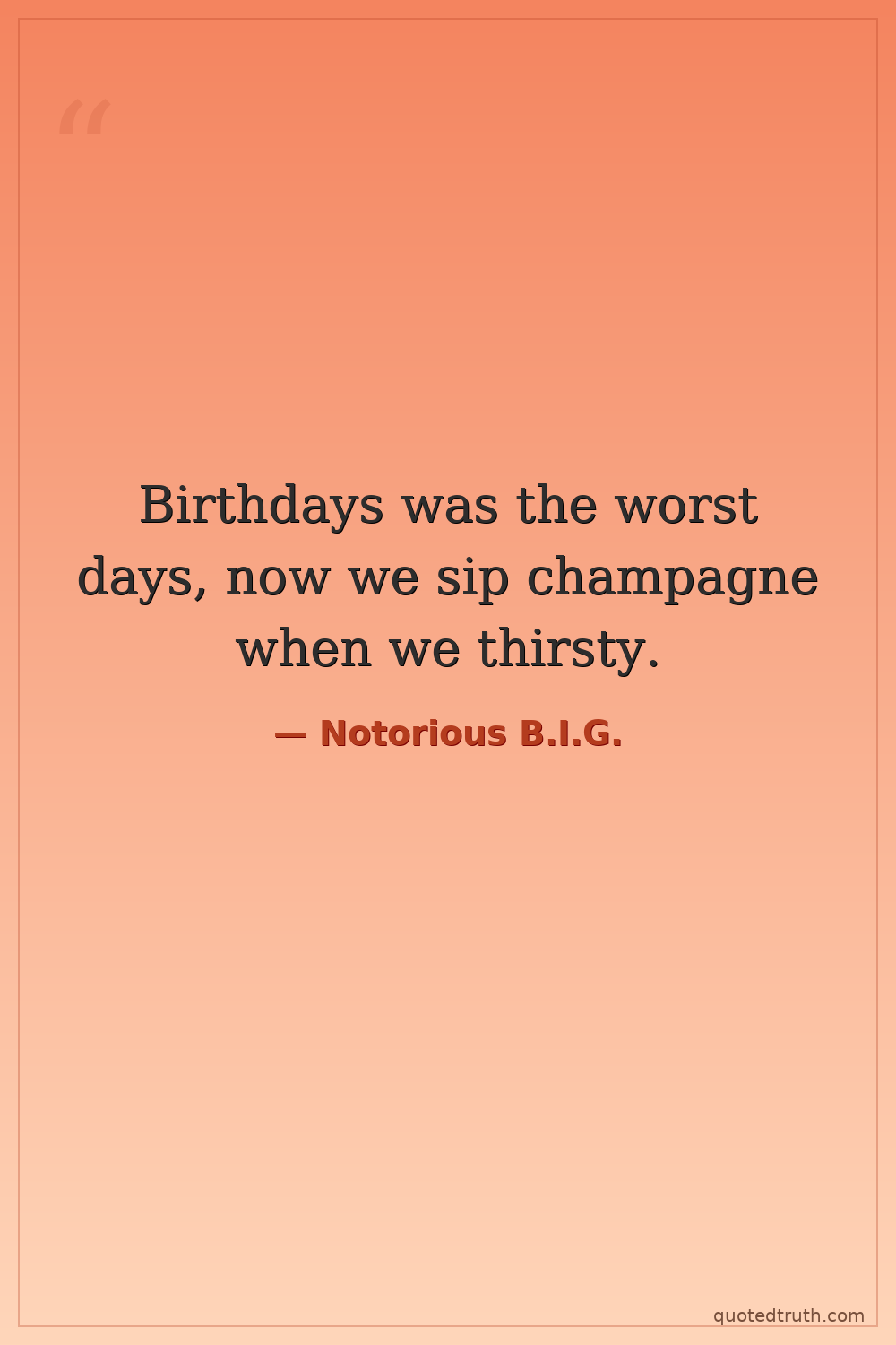 Birthdays was the worst days, now we sip champagne when we thirsty.