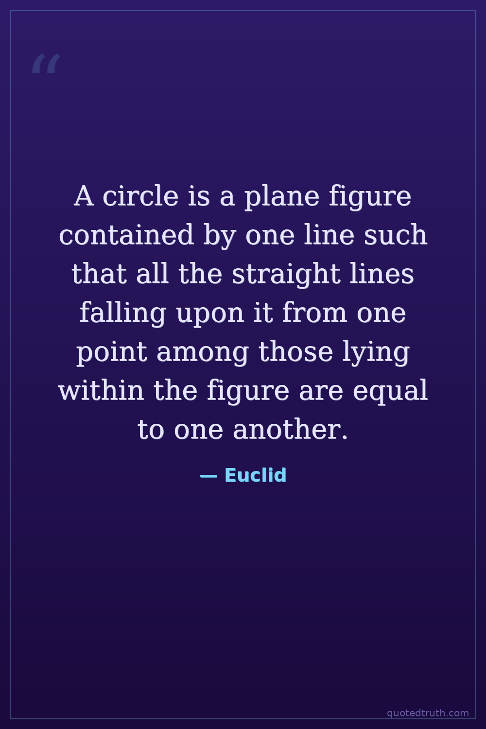 A circle is a plane figure contained by one line such that all the straight lines falling upon it from one point among those lying within the figure are equal to one another.