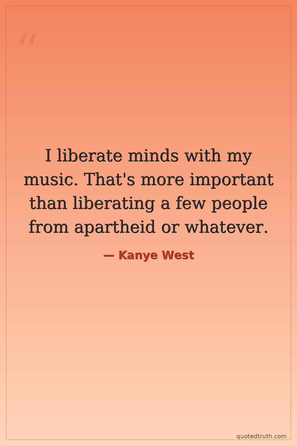 I liberate minds with my music. That's more important than liberating a few people from apartheid or whatever.