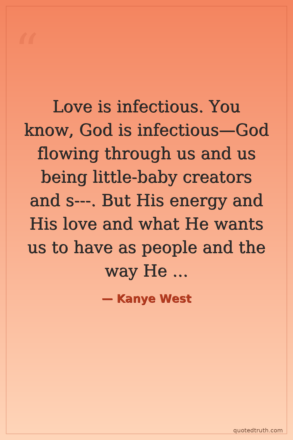 Love is infectious. You know, God is infectious—God flowing through us and us being little-baby creators and s---. But His energy and His love and what He wants us to have as people and the way He wants us to love each other, that is infectious. Like they said in Step Brothers: Never lose your dinosaur. This is the ultimate example of a person never losing his dinosaur.