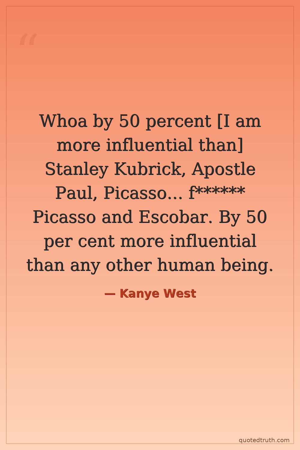 Whoa by 50 percent [I am more influential than] Stanley Kubrick, Apostle Paul, Picasso... f****** Picasso and Escobar. By 50 per cent more influential than any other human being.