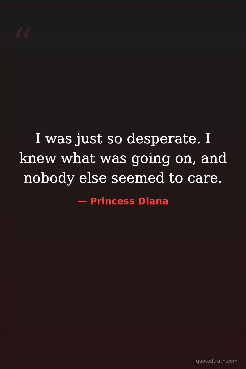 I was just so desperate. I knew what was going on, and nobody else seemed to care.