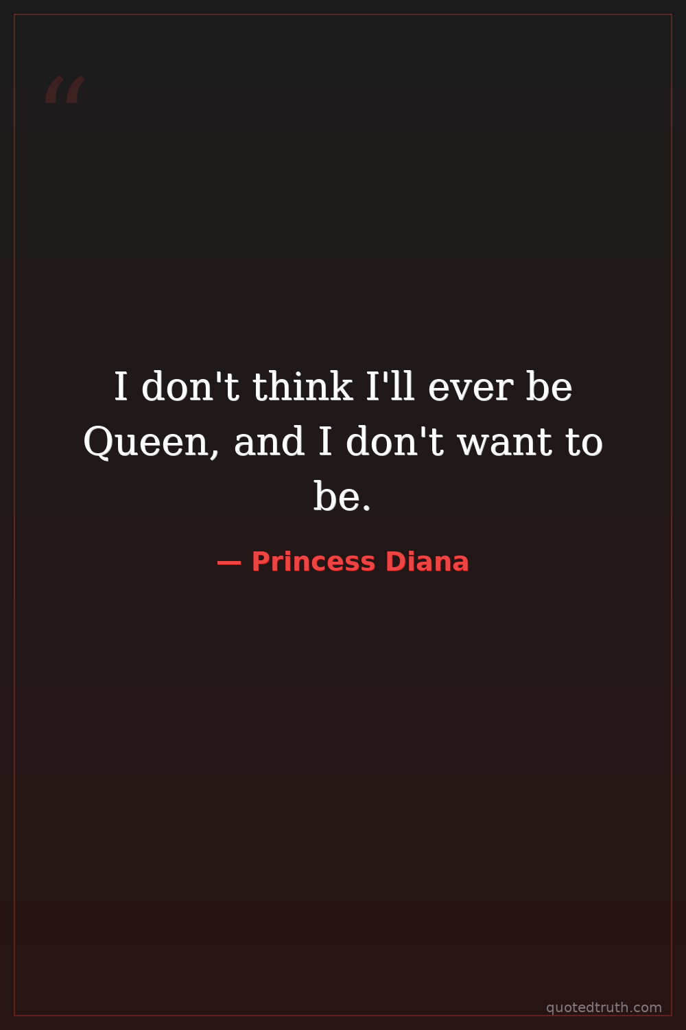 I don't think I'll ever be Queen, and I don't want to be.