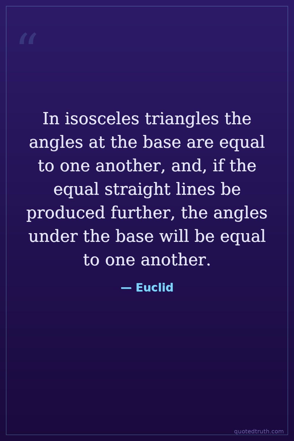 In isosceles triangles the angles at the base are equal to one another, and, if the equal straight lines be produced further, the angles under the base will be equal to one another.