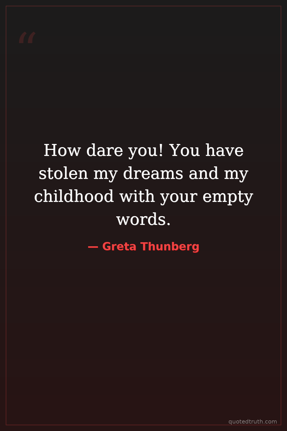 How dare you! You have stolen my dreams and my childhood with your empty words.