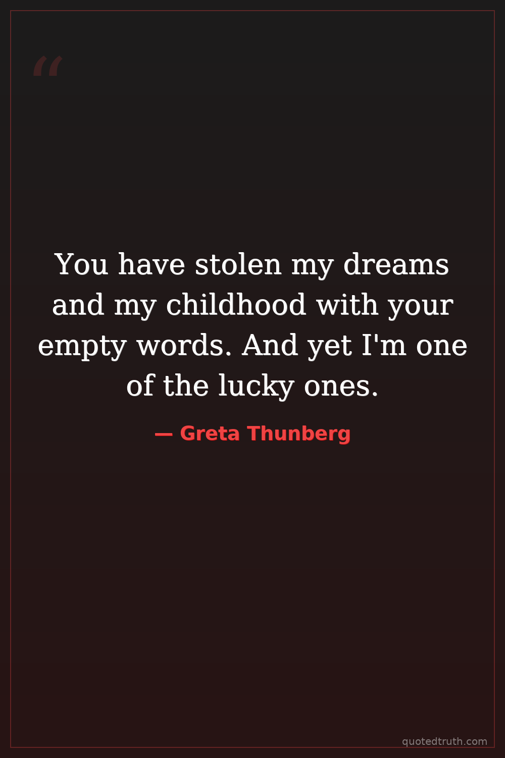 You have stolen my dreams and my childhood with your empty words. And yet I'm one of the lucky ones.