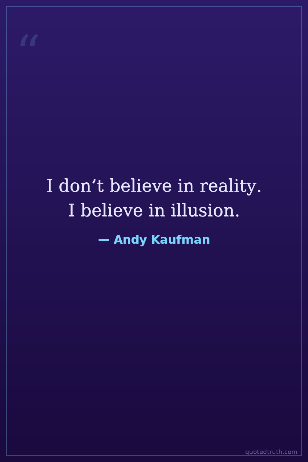 I don’t believe in reality. I believe in illusion.