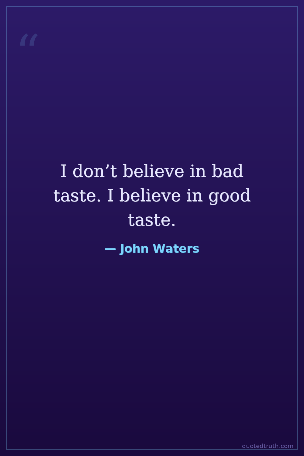I don’t believe in bad taste. I believe in good taste.