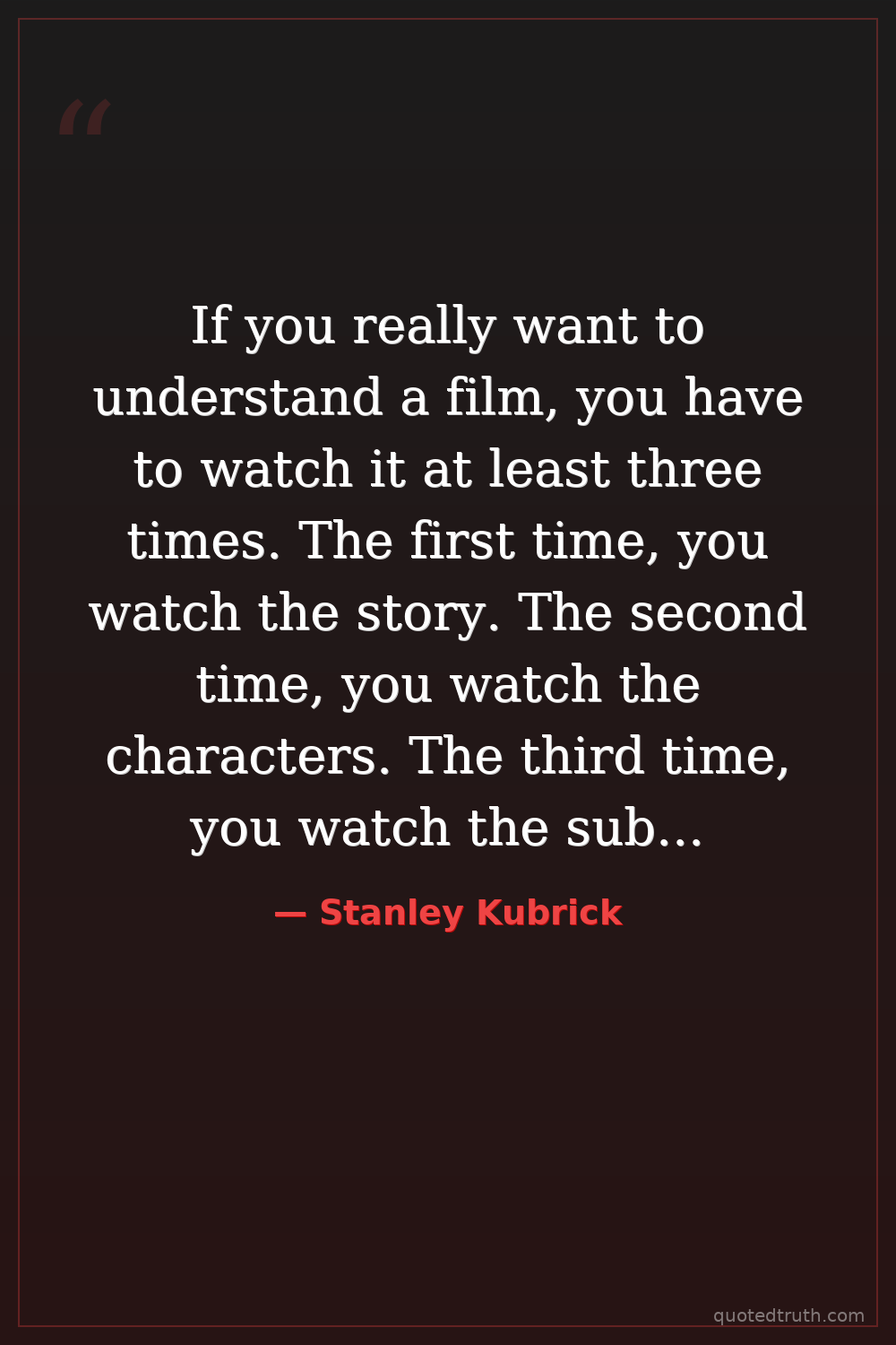 If you really want to understand a film, you have to watch it at least three times. The first time, you watch the story. The second time, you watch the characters. The third time, you watch the subtext and the hidden meanings.