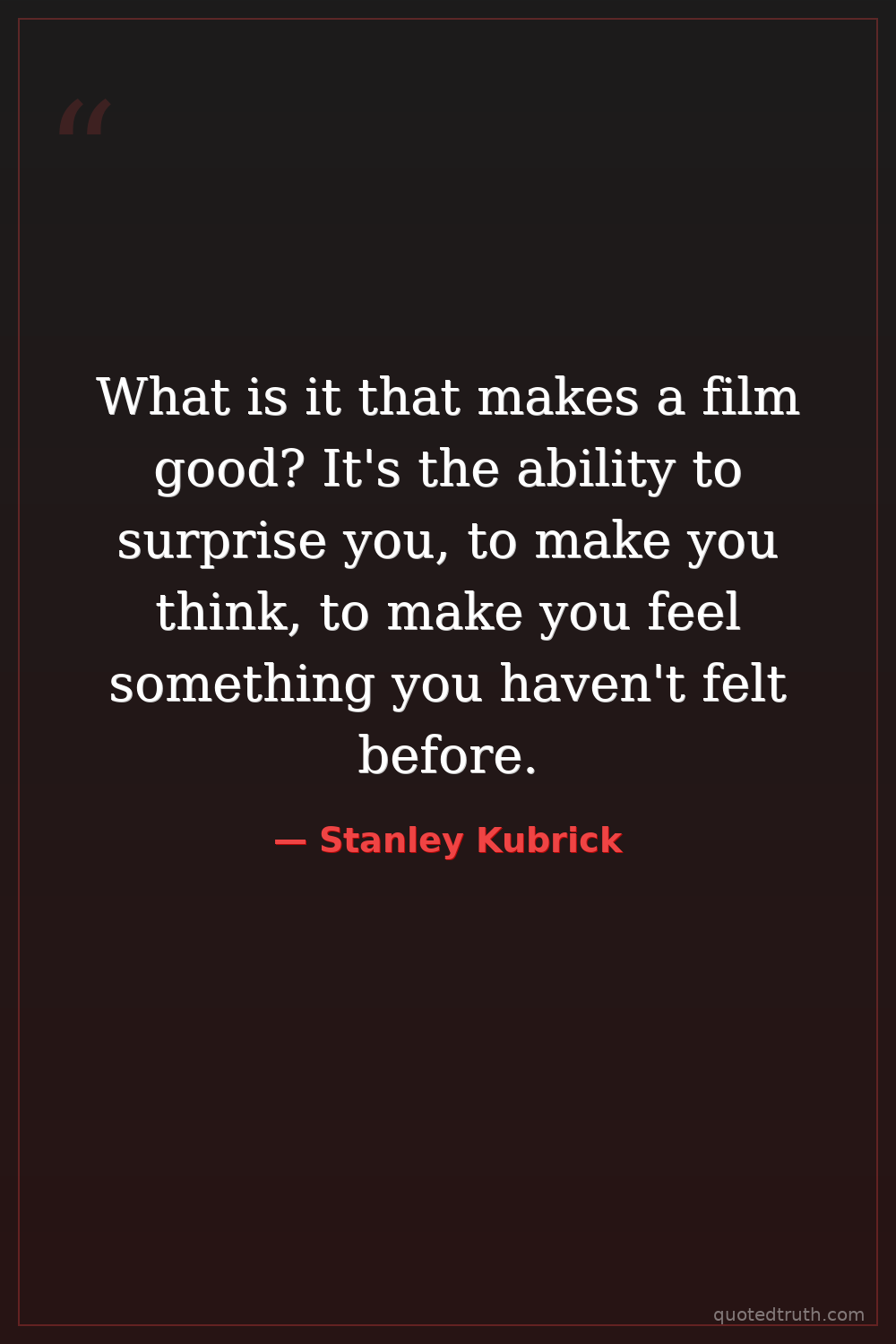 What is it that makes a film good? It's the ability to surprise you, to make you think, to make you feel something you haven't felt before.