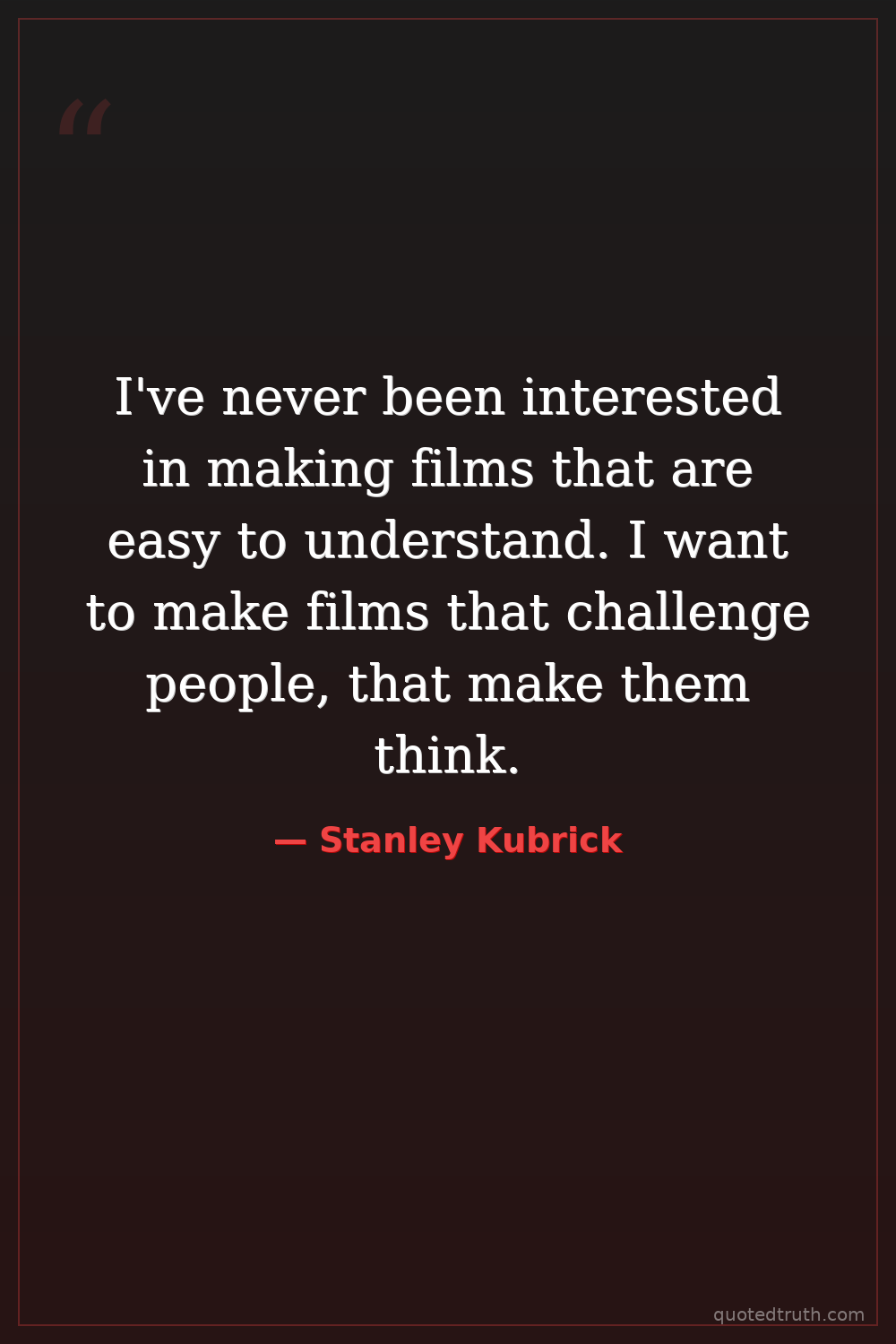I've never been interested in making films that are easy to understand. I want to make films that challenge people, that make them think.
