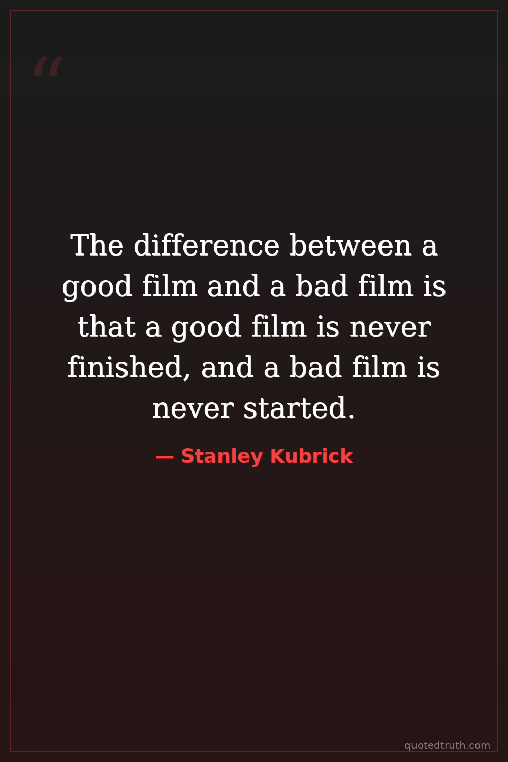 The difference between a good film and a bad film is that a good film is never finished, and a bad film is never started.