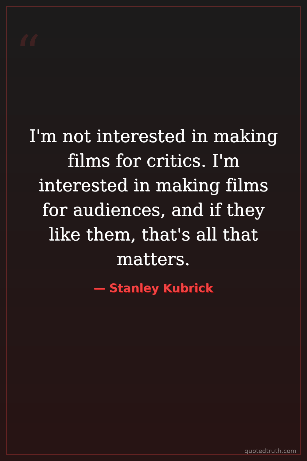 I'm not interested in making films for critics. I'm interested in making films for audiences, and if they like them, that's all that matters.