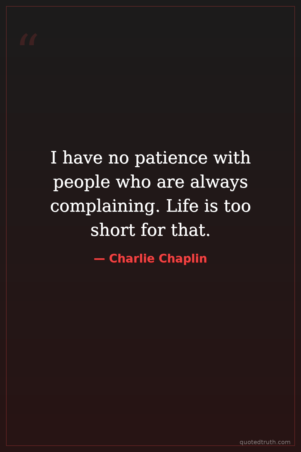 I have no patience with people who are always complaining. Life is too short for that.