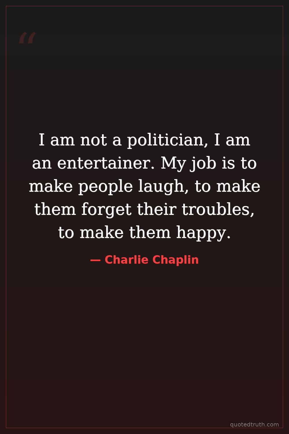 I am not a politician, I am an entertainer. My job is to make people laugh, to make them forget their troubles, to make them happy.