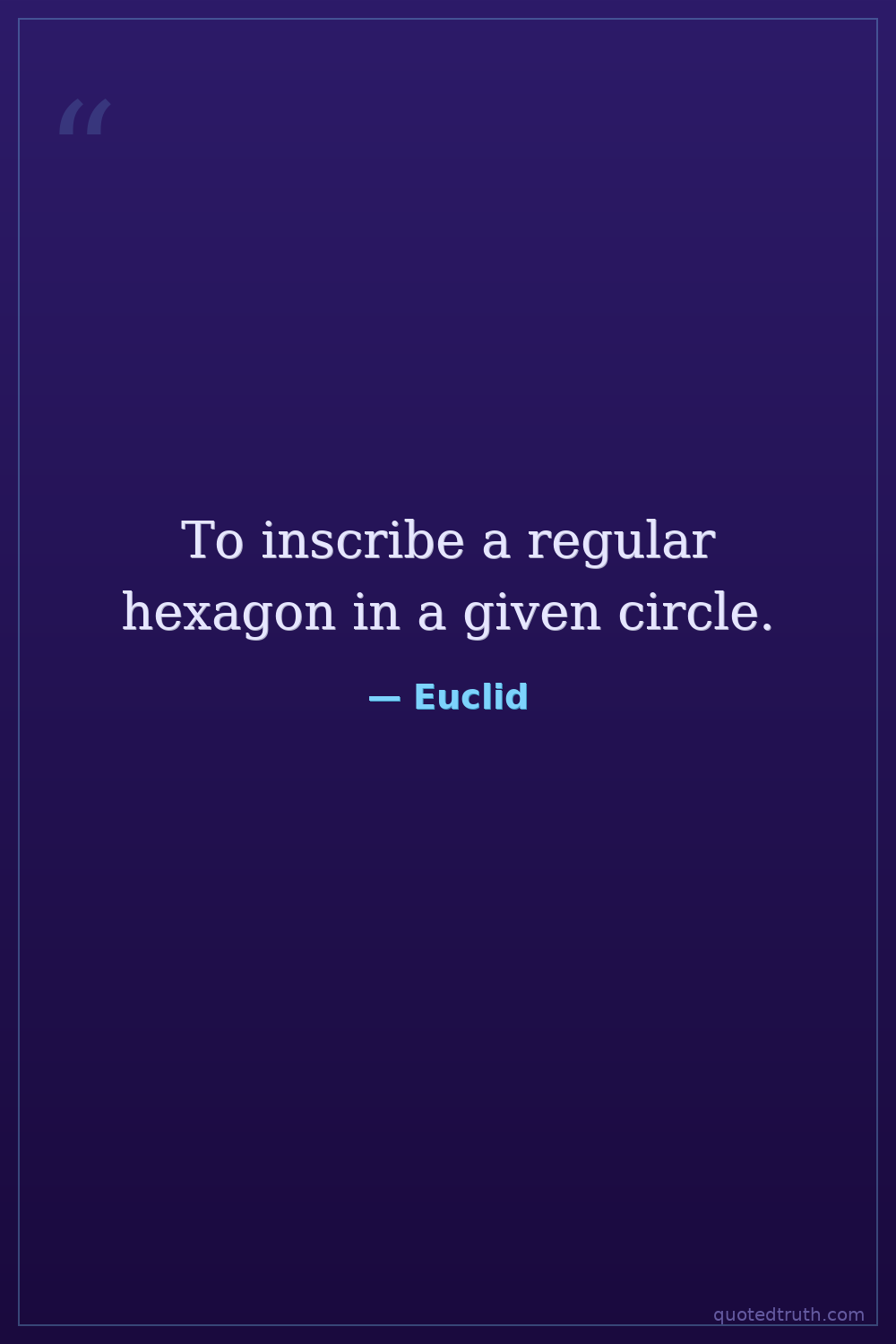 To inscribe a regular hexagon in a given circle.