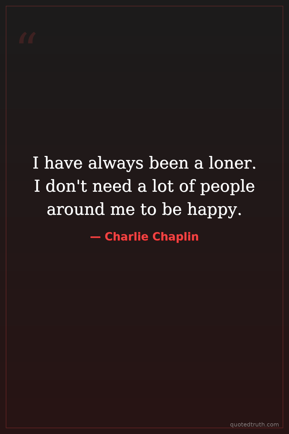 I have always been a loner. I don't need a lot of people around me to be happy.
