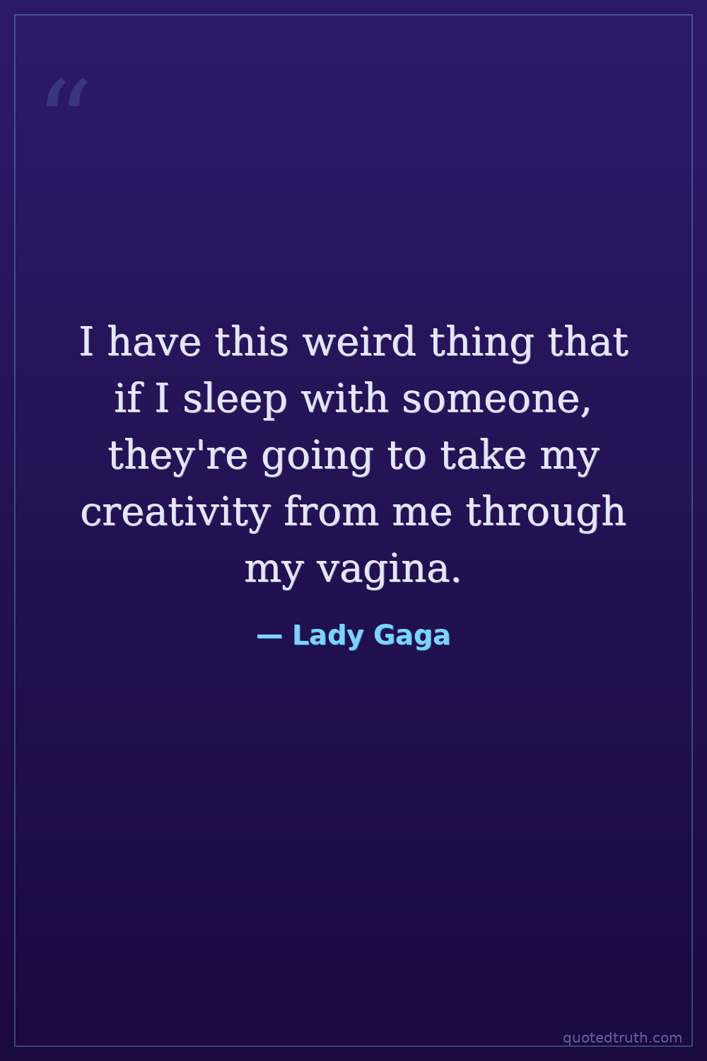 I have this weird thing that if I sleep with someone, they're going to take my creativity from me through my vagina.