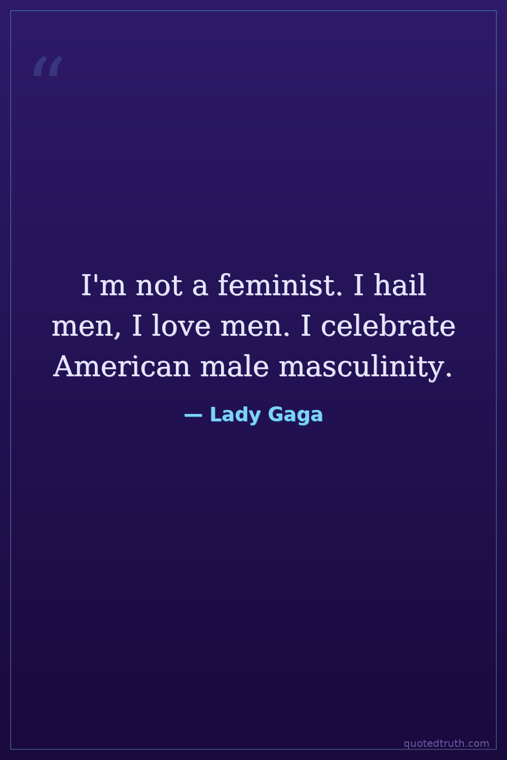 I'm not a feminist. I hail men, I love men. I celebrate American male masculinity.