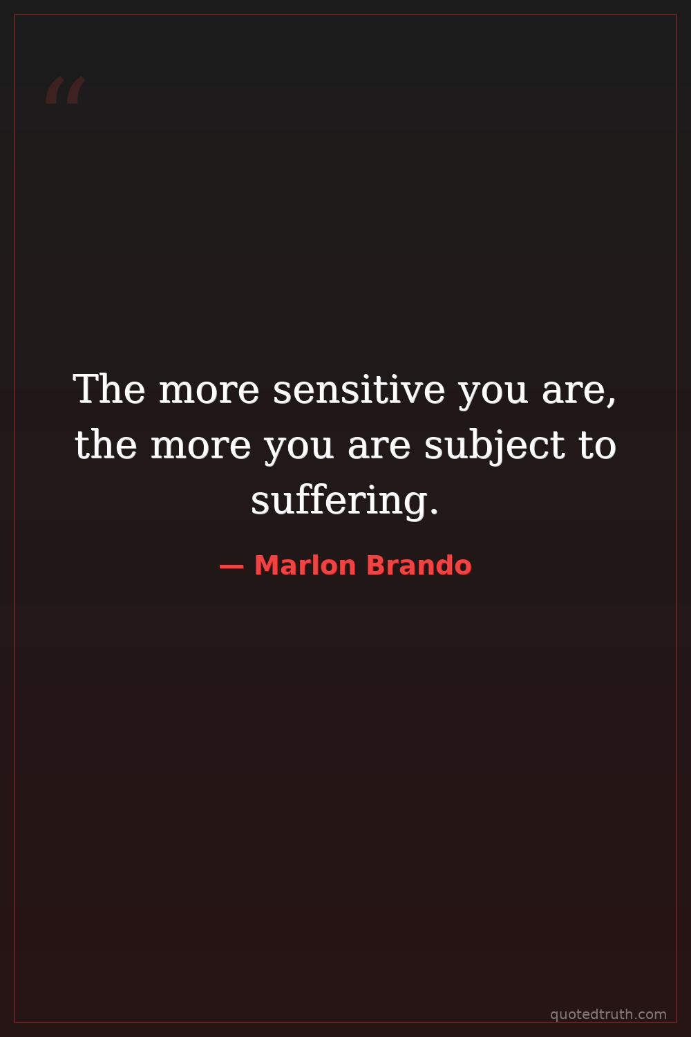 The more sensitive you are, the more you are subject to suffering.